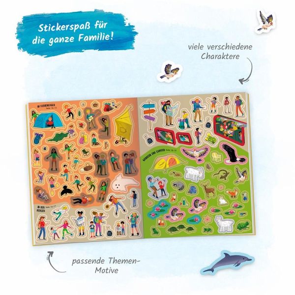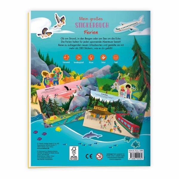 Egal ob am Strand, in den Bergen oder am See um die Ecke: Dieses detailreiche und liebevoll illustrierte Stickerbuch regt mit extragroßen Seiten und über 380 Stickern nicht nur die Vorstellungskraft an, sondern fördert auch die Feinmotorik und sorgt für den besonderen Spaßfaktor zuhause und unterwegs! Der perfekte Begleiter für die Ferien!