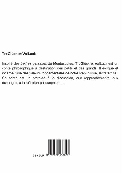 Inspiré des Lettres persanes de Montesquieu, TroGlück et VaLuck est un conte philosophique à destination des petits et des grands. Il évoque et incarne l'une des valeurs fondamentales de notre République, la Fraternité.