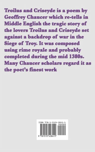 Troilus and Criseyde is a poem by Geoffrey Chaucer which re-tells in Middle English the tragic story of the lovers Troilus and Criseyde set against a backdrop of war in the Siege of Troy. It was composed using rime royale and probably completed during the mid 1380s. Many Chaucer scholars regard it as the poet's finest work.