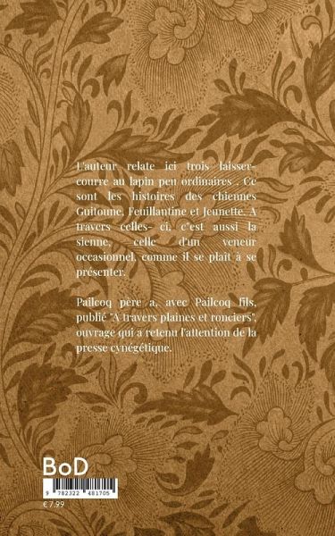 L'auteur relate ici trois laisser-courre au lapin peu ordinaires . Ce sont les histoires des chiennes Guitoune, Feuillantine et Jeunette. A travers celles-ci c"est aussi la sienne, celle d'un veneur occasionnel, comme il se plaît à se présenter.Pailcoq père a avec Pailcoq fils publié "A travers plaines et ronciers", ouvrage qui a retenu l'attention de la presse cynégétique.