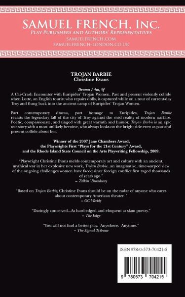 Past and present violently collide when Lotte, an English tourist who repairs dolls, is captured while on a tour of current-day Troy and flung back into the ancient camp of Euripides' Trojan Women. Part contemporary drama, part homage to Euripides' Trojan Women, Trojan Barbie recasts the legendary fall of the city of Troy against the vivid reality of modern warfare. Poetic, compassionate, and tinged with great warmth and humor, Trojan Barbie is an epic war story with a most unlik