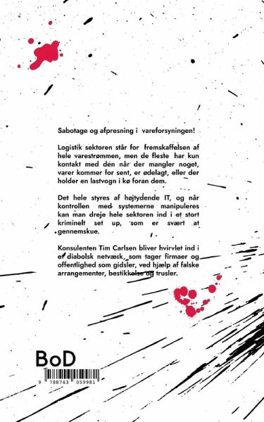 Sabotage og afpresning i vareforsyningen! Logistik sektoren står for fremskaffelsen af hele varestrømmen, men de fleste har kun kontakt med den når der mangler noget, varer kommer for sent, er ødelagt, eller der holder en lastvogn i kø foran dem. Det hele styres af højtydende IT, og når kontrollen med systemerne manipuleres kan man dreje hele sektoren ind i et stort kriminelt set- up, som er svært at gennemskue. Konsulenten Tim Carlsen bliver hvirvlet ind i et diabolsk netværk, som tager firmaer og offentlighed som gidsler, ved hjælp af falske arrangementer, bestikkelse og trusler.