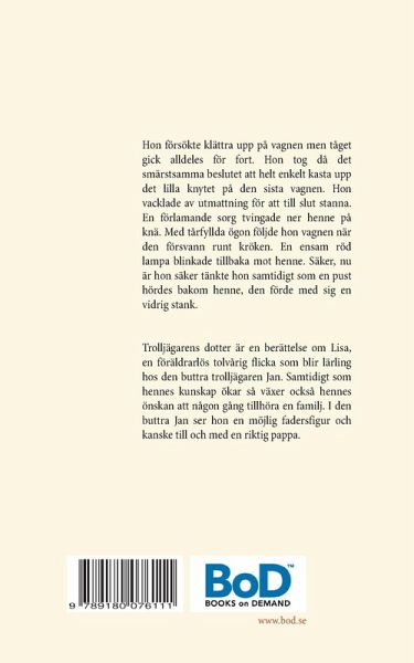 Trolljägarens dotter är berättelsen om Lisa, en föräldralös tolvårig flicka som blir lärling hos en bitter gammal trolljägare. Samtidigt som hennes träning blir hårdare och hennes kunskaper ökar så växer också hennes längtan att någon gång vara älskad och tillhöra en familj. I den buttra trolljägaren Jan ser hon en möjlig fadersfigur och, om hon bara vågar fråga, kanske till och med en riktig pappa.