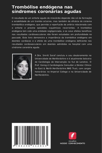 O resultado de um enfarte agudo do miocárdio depende não só da formação e estabilidade de um trombo oclusivo, mas também da eficácia do sistema trombolítico endógeno, que permite a reperfusão da artéria relacionada com o enfarte e previne episódios isquémicos recorrentes. A trombólise endógena tem sido uma entidade negligenciada, e os seus efeitos benéficos nos resultados cardiovasculares não foram estudados em profundidade no passado. Este livro demonstra a importância da trombólise endógena em doentes cardíacos e o efeito de uma trombólise endógena deficiente nos resultados cardiovasculares em doentes admitidos no hospital com uma síndrome coronária aguda.