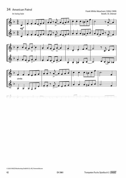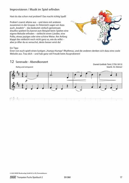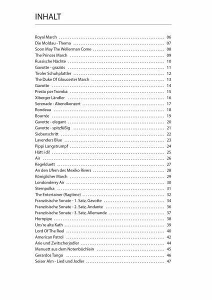 Das Spielbuch Band 2 ist die ideale Ergänzung zur Trompeten Fuchs Schule Band 2 und 3 - sowie zu vielen anderen Lehrwerken. Es enthält 55 sorgfältig ausgewählte Musikstücke: zahlreiche Meilensteine der Musikgeschichte, ergänzt durch weitere stilvolle und mitreißende Werke, die einfach Spaß machen und gerne gespielt werden."Sobald ein gewisses technisches Können erreicht ist, wird die stilistische Vielfalt im Spiel besonders wichtig. Genau hier setzt dieses Spielbuch an: Es bietet ein breites stilistisches Spektrum - von der Renaissance über Barock bis hin zu Tango und Jazz. Ein besonderer Schwerpunkt liegt auf der Volksmusik mit Weisen, Ländler, Polkas und Jodlern. Diese Stücke fördern nicht nur Spielfreude, sondern auch das Phrasenempfinden und das musikalische Ausdrucksvermögen.Alle Stücke sind als Duette oder Trios arrangiert - ideal, damit Schüler_innen gemeinsam mit Lehrkräften musizieren können. Denn was begeistert mehr als das gemeinsame Spiel?Viel Freude beim Entdecken der faszinierenden Welt der Blechbläsermusik!