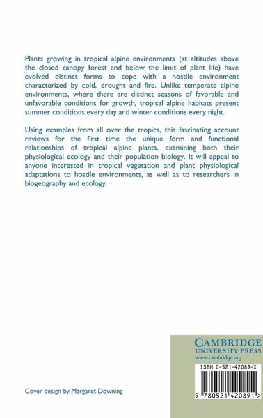 Plants growing in tropical alpine environments (at altitudes above the closed canopy forest and below the limit of plant life) have evolved distinct forms to cope with a hostile environment characterized by cold, drought and fire. Unlike temperate alpine environments, where there are distinct seasons of favourable and unfavourable conditions for growth, tropical alpine habitats present summer conditions every day and winter conditions every night. Using examples from all over the tropics, this fascinating account reviews, for the first time, the unique form and functional relationships of tropical alpine plants examining both their physiological ecology and population biology. It will appeal to anyone interested in tropical vegetation and plant physiological adaptations to hostile environment, as well as to researchers in biogeography and ecology.