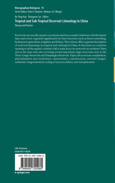 Reservoirs are specific aquatic ecosystems and have complex behaviors of both natural lakes and rivers, regulated significantly by their functions such as flood controlling, hydropower generation, irrigation and fishery. This volume offers a general description of reservoir limnology in tropical and subtropical China. It functions as a window opening to all the aquatic scientists with a main focus on reservoirs in southern China and at the same time also covering several important, large reservoirs such as the Three Gorge Reservoir and Danjiangko Reservoir. Topics discussed are zooplankton, phytoplankton and zoobenthos communities, cyanobateria, nutrient budget, sediments, biogeochemical cycling of mercury, fishery and eutrophication.