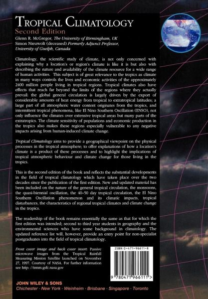 Tropical Climatology Second Edition Glenn R. McGregor, The University of Birmingham, UK Simon Nieuwolt (deceased) Formerly Adjunct Professor, University of Guelph, Canada Climatology, the scientific study of climate, is not only concerned with explaining why a location s or region s climate is like it is but also with describing the nature and availability of the climate resource for a wide range of human activities. This subject is of great relevance to the tropics as climate in many ways controls the lives and economic activities of the approximately 2400 million people living in tropical regions. Tropical climates also have effects that reach far beyond the limits of the regions where they actually prevail: the global general circulation is largely driven by the export of considerable amounts of heat energy from tropical to extratropical latitudes: a large part of all atmospheric water content originates from the tropics, and intermittent tropical phenomena, like El Nino Southern Oscillation (ENSO), not only influence the climates over extensive tropical areas but many parts of the extratropics. The climate sensitivity of populations and economic production in the tropics also makes these regions especially vulnerable to any negative impacts arising from human-induced climate change. Tropical Climatology aims to provide a geographical viewpoint on the physical processes in the tropical atmosphere: to offer explanations of how a location s climate is a product of these processes and to highlight the implications of tropical atmospheric behaviour and climate change for those living in the tropics. This is the second edition of the book and reflects the substantial developments in the field of tropical climatology which have taken place over the two decades since the publication of the first edition. New and updated material has been included on the nature of the general tropical circulation, the monsoons, the quasi-biennial oscillation, the 40-50 day tropical circulation, the El Nino Southern Oscillation phenomenon and its climatic impacts, tropical disturbances, the characteristics of regional tropical climates and climate change in the tropics. The readership of the book remains essentially the same as that for which the first edition was intended; second to third year students in geography and the environmental sciences who have some background in climatology. The updated reference list will, however, provide an entry point for non-specialist postgraduates into the field of tropical climatology.
