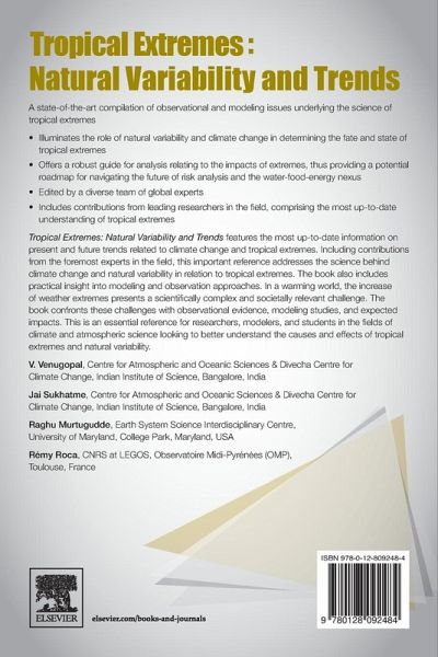 Tropical Extremes: Natural Variability and Trends features the most up-to-date information on present and future trends related to climate change and tropical extremes. Including contributions from the foremost experts in the field, this important reference addresses the science behind climate change and natural variability in relation to tropical extremes. The book also includes practical insight into modeling and observation approaches. In a warming world, the increase of weather extremes presents a scientifically complex and societally relevant challenge. The book confronts these challenges with observational evidence, modeling studies and expected impacts. This is an essential reference for researchers, modelers and students in the fields of climate and atmospheric science looking to better understand the causes and effects of tropical extremes and natural variability.