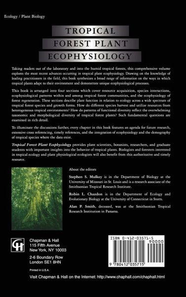 This book is arranged into four sections which cover resource acquisition, species interactions, ecophysiological patterns within and among tropical forest communities, and the ecophysiology of forest regeneration. These sections describe plant function in relation to ecology across a wide spectrum of tropical forest species and growth forms. How do different species harvest and utilize resources from heterogeneous tropical environments? How do patterns of functional diversity reflect the overwhelming taxonomic and morphological diversity of tropical forest plants? Such fundamental questions are examined in rich detail. To illuminate the discussions further, every chapter in this book features an agenda for future research, extensive cross referencing, timely references, and the integration of ecophysiology and the demography of tropical species where the data exist. Tropical Forest Plant Ecophysiology provides plant scientists, botanists, researchers, and graduate students with important insights into the behavior of tropical plants. Biologists and foresters interested in tropical ecology and plant physiological ecologists will also benefit from this authoritative and timely resource.