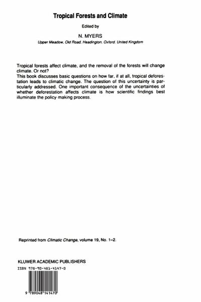 This book discusses basic questions on how far, if at all, tropical deforestation leads to climatic change. The question of this uncertainty is particularly addressed. One important consequence of the uncertainties of whether deforestation affects climate is how scientific findings best illuminate the policy-making process.