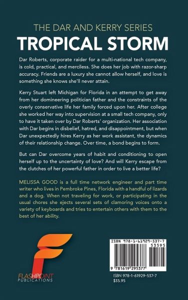 From bestselling author Melissa Good comes a tale of heartache, longing, family strife, lust for love, and redemption. Tropical Storm took the lesbian reading world by storm when it was first written . . . now read this exciting revised "author's cut" edition. Dar Roberts, corporate raider for a multi-national tech company, is cold, practical, and merciless. She does her job with razor-sharp accuracy. Friends are a luxury she cannot allow herself, and love is something she knows she'll never attain. Kerry Stuart left Michigan for Florida in an attempt to get away from her domineering politician father and the constraints of the overly conservative life her family forced upon her. After college she worked her way into supervision at a small tech company, only to have it taken over by Dar Roberts' organization. Her association with Dar begins in disbelief, hatred, and disappointment, but when Dar unexpectedly hires Kerry as her work assistant, the dynamics of their relationship change. Over time, a bond begins to form. But can Dar overcome years of habit and conditioning to open herself up to the uncertainty of love? And will Kerry escape from the clutches of her powerful father in order to live a better life? ***Fandoms, S.C., a publisher located in Madrid, Spain, has been licensed to publish an authorized Spanish translation of Tropical Storm. This is the first authorized translation of this title, though bootleg translations have circulated for years.
