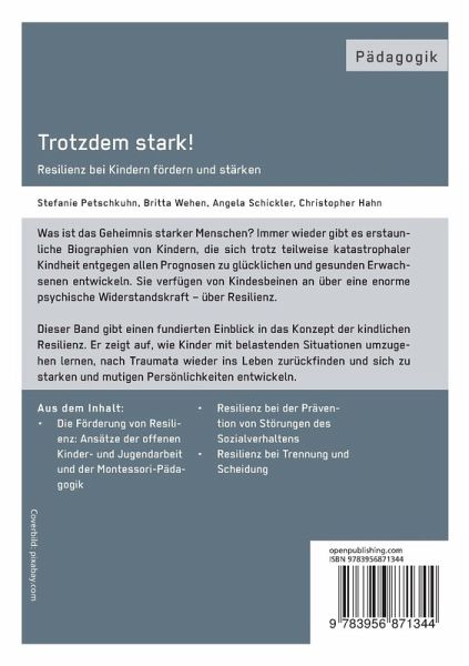 Dieser Band gibt einen fundierten Einblick in das Konzept der kindlichen Resilienz. Er zeigt auf, wie Kinder mit belastenden Situationen umzugehen lernen, nach Traumata wieder ins Leben zurückfinden und sich zu starken und mutigen Persönlichkeiten entwickeln.
