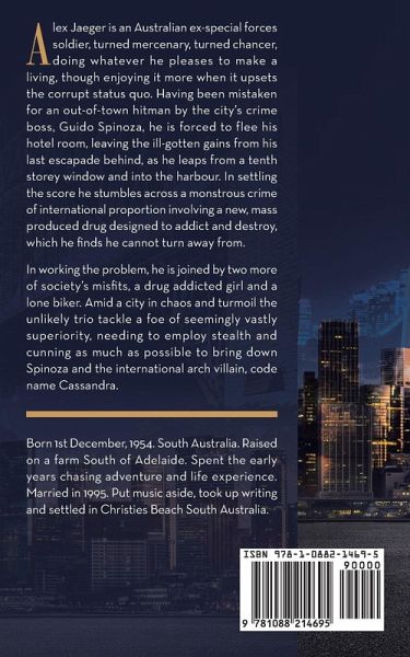 Trouble in Monarto Monarto is in the grip of a crimewave. The streets are ruled by crime bosses, Quido Spinoza and his spiteful nephew, Vincent Zendell. Into the frame comes Alex Jaeger, a retired Special Air Service soldier cum freelance thief, who just arrived to holiday in town when is mistaken for a hitman and targeted by Spinoza. On the morning of his first day in town he is attacked and in the confusion forced to abandon his suitcase full of ill-gotten loot from a previous job. It becomes his personal mission to even the score, in the process gaining the aid of a fringe dwelling social outcast biker, Took, and a drug dependent girl named Janie, struggling to free herself from addiction to the newly designed drug which is at the heart of the great conspiracy. In the process of the evening, the scoring trio discovers a global conspiracy in the planning, between international governments and a global crime boss, code name Cassandra. Amid a city under siege, as social unrest reaches a crescendo, it is the three social misfits versus organized crime. Putting personal safety aside, they risk it all to save society, in the process finding personal redemption and saving the world from the darkness it never sees coming. ¿¿About The Author: T H O M A S J A M E S T A Y L O R, born Dec 1st, 1954. Author of twelve novels and short story collections. First published in the middle 1980s and written on subject matter ranging through real life, the bizarre and unusual, crime/romance, philosophy, and more recently, a first foray into sci-fi. Winner of the Pacific Book Award Star of Exceptional Merit with For Your Pleasure & Questionable Behaviour, Taylor consistently earns high praise from book reviewers while continuing to surprise, interest, and fascinate with unusual material in the novel and short story format. "Taylor's work is amazingly diverse" - US Review of Books.