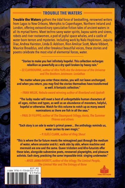 "Trouble the Waters gathers the tidal force of bestselling, renowned writers from Lagos to New Orleans, Memphis to Copenhagen, Northern Ireland and London, offering extraordinary speculative fiction tales of ancient waters in all its myriad forms. Meet techno savvy water spirits, bayou saints and sirens, robots and river rootwomen, a pod of joyful space whales, and a castle of water-born terrors and mysteries. Including work by Nalo Hopkinson, Jaquira Diaz, Andrea Hairston, Linda D. Addison, Rion Amilcar Scott, Marie Vibbert, Maurice Broaddus, and other breakout beautiful voices, these stories and poems celebrate the most vital of elemental forces, water."--Provided by publisher.