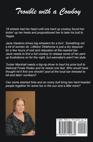 18 wheels had her heart until one hard-up cowboy found her kickin' up her heels and propositions her to take his bull to Vegas. Jacie Hawkins drives big wheelers for a livin'. Something not a lot of women do. Littleton Oklahoma is just a dry stopover for a few hours of rest and relaxation at the nearest bar. Jacie needs to find a hot cowboy to release some of her pent up frustrations on for the night, but wannabe's aren't her style. Tucker Marshall needs a big-rig driver to haul his prize bull to National Finals Rodeo and he needs one fast. Who would have thought he'd find one shootin' pool at the local bar dressed to kill and takin' numbers? Can some slashed tires and an ornery bull bring two hard-headed people together for some fun in the sun and a little more?