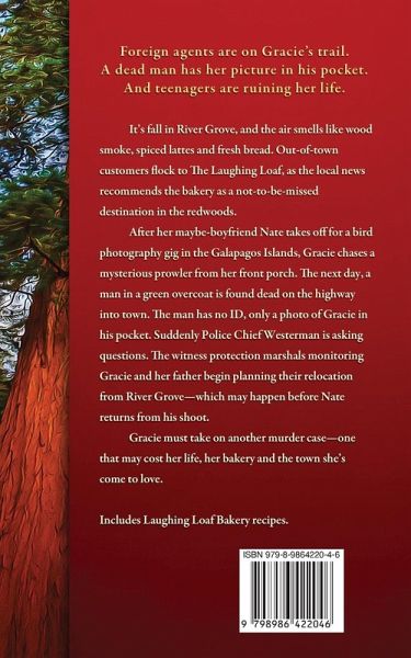Foreign agents are on Gracie's trail. A dead man has her picture in his pocket.And teenagers are ruining her life. It's fall in River Grove, and the air smells like wood smoke, spiced lattes and fresh bread. Out-of-town customers flock to The Laughing Loaf, as local news recommends the bakery as a not-to-be-missed destination in the redwoods. After her maybe-boyfriend Nate takes off for a bird photography gig in the Galapagos Islands, Gracie chases a mysterious prowler from her front porch. The next day, a man in a green overcoat is found dead on the highway into town. The man has no ID, only a photo of Gracie in his pocket. Suddenly Police Chief Westerman is asking questions. The witness protection marshals monitoring Gracie and her father begin planning their relocation from River Grove-which may happen before Nate returns from his shoot. Gracie must take on another murder case--one that may cost her life, her bakery and the town she's come to love. Laughing Loaf Bakery recipes included.