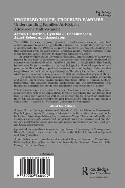 1: Destructive Family Relations in Adolescence 1: An Introduction to Troubled Youth in Troubled Families 2: Child Abuse and Juvenile Delinquency: What are The Links? 3: The Adolescent Runaway II: Studying Troubled Youth and Troubled Families 4: Methodological Considerations in Studying Troubled Youth and Troubled Families 5: Defining High Risk 6: Characteristics of High-Risk Families: Parental and Adolescent Perspectives III: Challenges to Adolescent Development 7: Social Competence in Adolescence 8: Behavior Problems in Adolescence 9: Socioeconomic Stress and Family Functioning in Adolescence 10: Adolescents in Stepfamilies IV: The Prospects for IV Troubled Youth and Troubled Families 11: Prospects for Intervention with Troubled Youth and Troubled Families 12: Conclusion: The Prognosis for Troubled Youth in Troubled Families