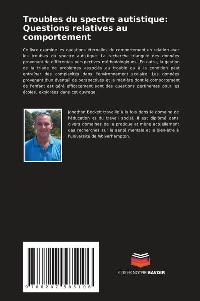 Ce livre examine les questions éternelles du comportement en relation avec les troubles du spectre autistique. La recherche triangule des données provenant de différentes perspectives méthodologiques. En outre, la gestion de la triade de problèmes associés au trouble ou à la condition peut entraîner des complexités dans l'environnement scolaire. Les données provenant d'un éventail de perspectives et la manière dont le comportement de l'enfant est géré efficacement sont des questions pertinentes pour les écoles, explorées dans cet ouvrage.
