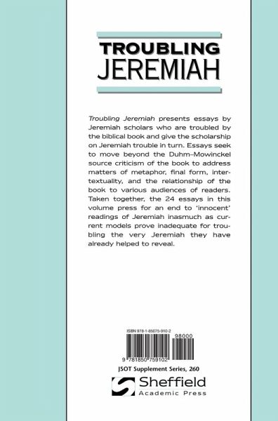 Troubling Jeremiah presents essays by Jeremiah scholars who are troubled by the biblical book and give the scholarship on Jeremiah trouble in turn. Essays seek to move beyond the Duhm-Mowinckel source criticism of the book to address matters of metaphor, final form, intertextuality, and the relationship of the book to various audiences of readers. Taken together, the 24 essays in this volume press for an end to 'innocent' readings of Jeremiah inasmuch as current models prove inadequate for troubling the very Jeremiah they have already helped to reveal.