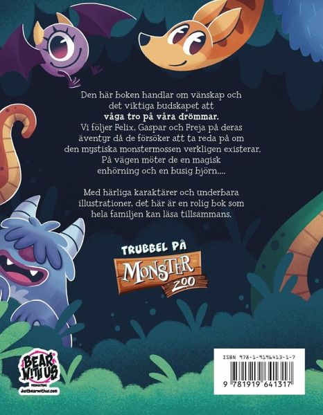 Den här boken handlar om vänskap och det viktiga budskapet att våga tro på våra drömmar. Vi följer Felix, Gaspar och Freja på deras äventyr då de försöker att ta reda på om den mystiska monstermossen verkligen existerar. På vägen möter de en magisk enhörning och en busig björn.... Med härliga karaktärer och underbara illustrationer, det här är en rolig bok som hela familjen kan läsa tillsammans.
