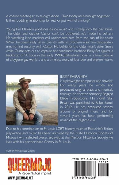 Is their budding relationship for real or just wishful thinking? Young Tim Dawson produces dance music and is deep into the bar scene. The older and quieter Castor can't be bothered; he's made his solitary life watching lane markers roll underneath him from the cab of his truck. When he does finally fall in love, it's with his brother-in-law. Tim desperately tries to find security with Castor. He befriends the older man's sister Sonia while Castor sets out to capture her handsome husband Ricky. Set against a backdrop of St. Louis in the early 1990s, Rabushka's novel is a time capsule of a bygone gay world ... and a timeless story of lost love and broken hearts. Jerry Rabushka is a playwright, composer, and novelist. For many years he wrote and produced original plays and musicals through his theater company Ragged Blade Productions. His novel Star Bryan was published by Rebel Satori in 2012. He has produced several albums of original music, and for several years has been performing music of the ragtime era. Due to his contribution to St. Louis LGBT history, much of Rabushka's fiction, playwriting and music has been archived by the State Historical Society of Missouri, with selected pieces archived at the Missouri Historical Society. He lives with his partner Isaac Cherry in St. Louis.