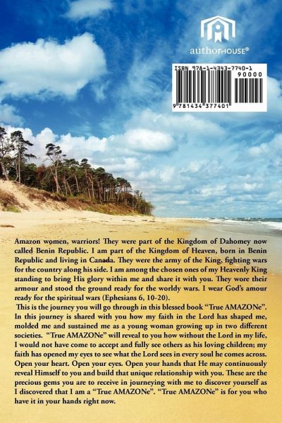 Amazon women, warriors! They were part of the Kingdom of Dahomey now called Benin Republic. I am part of the Kingdom of Heaven, born in Benin Republic and living in Canada. They were the army of the King, fighting wars for the country along his side. I am among the chosen ones of my Heavenly King standing to bring His glory within me and share it with you. They wore their armour and stood the ground ready for the worldy wars. I wear God's amour ready for the spiritual wars (Ephesians 6, 10-20). This is the journey you will go through in this blessed book "True Amazone". In this journey is shared with you how my faith in the Lord has shaped me, molded me and sustained me as a young woman growing up in two different societies. "True Amazone" will reveal to you how without the Lord in my life, I would not have come to accept and fully see others as his loving children; my faith has opened my eyes to see what the Lord sees in every soul he comes across. Open your heart. Open your eyes. Open your hands that He may continuously reveal Himself to you and build that unique relationship with you. These are the precious gems you are to receive in journeying with me to discover yourself as I discovered that I am a "True Amazone". "True Amazone" is for you who have it in your hands right now.