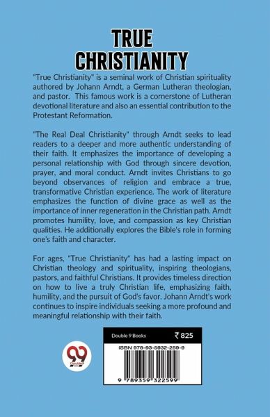 "True Christianity" is a seminal work of Christian spirituality authored by Johann Arndt, a German Lutheran theologian, and pastor. This famous work is a cornerstone of Lutheran devotional literature and also an essential contribution to the Protestant Reformation. "The Real Deal Christianity" through Arndt seeks to lead readers to a deeper and more authentic understanding of their faith. It emphasizes the importance of developing a personal relationship with God through sincere devotion, prayer, and moral conduct. Arndt invites Christians to go beyond observances of religion and embrace a true, transformative Christian experience. The work of literature emphasizes the function of divine grace as well as the importance of inner regeneration in the Christian path. Arndt promotes humility, love, and compassion as key Christian qualities. He additionally explores the Bible's role in forming one's faith and character. For ages, "True Christianity" has had a lasting impact on Christian theology and spirituality, inspiring theologians, pastors, and faithful Christians. It provides timeless direction on how to live a truly Christian life, emphasizing faith, humility, and the pursuit of God's favor. Johann Arndt's work continues to inspire individuals seeking a more profound and meaningful relationship with their faith.