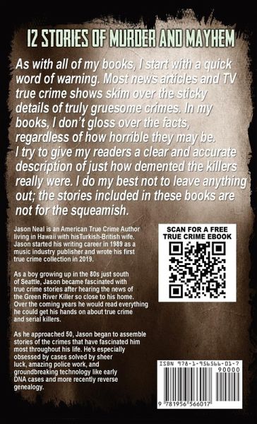 12 True Crime Stories of Murder & MayhemReaders Love This Series - Over 7,000 Five-Star Ratings on Amazon and GoodreadsSeventh Book of the True Crime Case Histories Series (2021) If you're familiar with the previous books in the True Crime Case Histories series, you already know that I start each book with a brief warning. Real true crime is not for everyone. The stories in this book represent humanity at its absolute worst. Pure evil. Television crime shows and news articles often skip the gruesome parts of true crime stories. The real details are just too grisly for the average viewer or reader. In my books, however, I do my best to include the details, regardless of how unsettling they may be. Each story requires hours of research. I search through old newspaper articles, court documents, police reports, autopsy results, and first-hand descriptions. Some of the specifics can be disconcerting. I choose to include the details not to shock but to give the reader a deeper view into the mind of the killer. Although it's unlikely any of us will understand the motives of a diabolical monster, the level of depravity will keep you turning pages. That being said, if you are overly squeamish about the details of true crime, this book may not be for you. If you're okay with it... then let's begin. Volume 7 features: Longer stories, more photos, a bonus chapter, and an online appendix with additional photos, videos, and documents. Volume 7 of True Crime Case Histories features twelve new stories from the past fifty years. A sampling of the stories includes: You'll read about a law enforcement officer that took advantage of the trust associated with his uniform. His brutal reign of terror lasted eight years. It took the bravery of two young women that escaped his grasp to bring him down. There's the story of the recent law school graduate with a crush on his neighbor. Rather than asking her out on a date, he stalked and spied on his classmate, eventually taking her life. There's also the heartbreaking story of a single mom, drowning in debt, that did the unthinkable for insurance money. Seven of the stories in this book feature women killers, two of whom took the time to meticulously dismember their victims-a task that can take great strength. Another woman manipulated her two teenage boys into killing for her. Yet another woman staged an elaborate hoax to get rid of her loving husband rather than go through the agony of a messy divorce. You'll also read of a sadistic group of up to twelve killers that took joy in abducting and torturing young men in Australia. Sadly, only one of the mysterious group has been brought to justice. Plus many more disturbing stories. The twelve stories in this volume are shocking and disturbing, but they're true. These things really happen in the world. We may never understand why killers do what they do, but at least we can be better informed. You may have heard of a few of the stories in this volume, but there are several I'm almost certain you haven't.