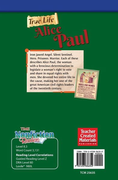 This informational text examines the life of the women's rights activist and suffragist who fought for women's right to vote. Developed by Timothy Rasinski and featuring TIME content, this high-interest book includes essential text features like an index, captions, glossary, and table of contents. The intriguing sidebars, detailed images, and in-depth Reader's Guide require students to connect back to the text and encourage multiple readings. The Think Link and Dig Deeper! sections develop students' higher-order thinking skills. The Check It Out! section includes suggested books, videos, and…mehr