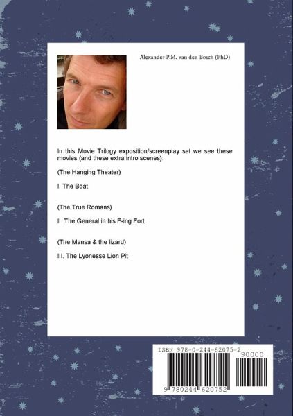 In this trilogy of screenplays we see this, with these intro scenes: (The Hanging Theater), I. The Boat, (The True Romans), II. The General in his F-ing Fort, (The Mansa & the lizard), III. The Lyonesse Lion Pit. MORE
