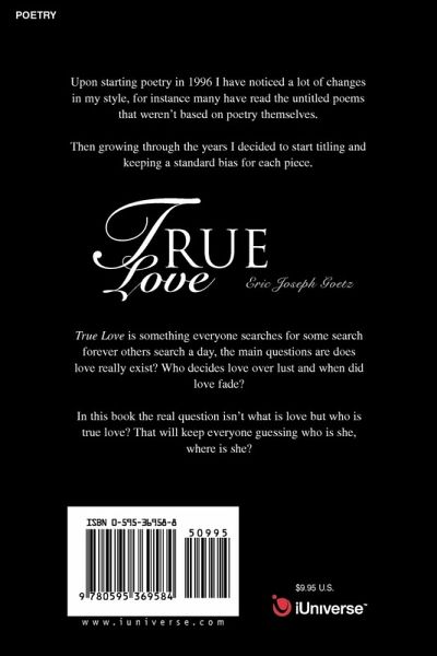 True Love is something everyone searches for some search forever others search a day, the main questions are does love really exist? Who decides love over lust and when did love fade? In this book the real question isn't what is love but who is true love? That will keep everyone guessing who is she, where is she?
