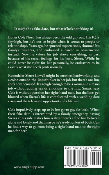 It might be a fake date, but what if he's not faking it? Loner Cole North has always been the odd guy out. His IQ is sky-high, but he's not so bright when it comes to people or relationships. Years ago, he spurned expectations, shunned his family's business, and embraced a career in construction instead. Now he values his job above everything, in part because of his secret feelings for his boss, Sierra. While he could never be right for her personally, he endeavors to be exactly what she needs professionally. Remodeler Sierra Lowell might be creative, hardworking, and a color-outside-the-lines thinker in her job, but there's one line she's never crossed. It's tough enough to be a woman in a man's job without adding sex or emotions to the mix. Smart, sexy Cole is without question her right-hand man, but the lines get blurred when Sierra's life is complicated with a wedding date crisis and the television opportunity of a lifetime. Cole impulsively steps up to be her go-to guy for both. When their fake date is interrupted by a family emergency, having Sierra at his side makes him realize there's a fine line between alone and lonely and that maybe he's ready for less of both. Can he find a way to go from being a right-hand man to the right man for her?