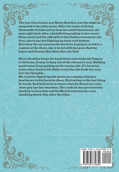 The last time Louisa saw Harry Rawlins was the night he proposed to her after prom. After ten years of living thousands of miles away from her small hometown, she runs right back after a humiliating ending to her career. Diner work and the odd shift at the Italian restaurant she lives above has her fighting up from rock bottom. But when the one person she has been hoping to avoid is a regular at the diner, she is faced with her past. And the hopes and dreams that died after she fled. Harry Rawlins keeps his head down and works his fingers to the bone, if only to keep out of his old man's way. Nothing good comes from getting on his wrong side. It's been ten years since Louisa left. Still, every day she finds her way into his thoughts. His world is tipped upside down on a regular trip into Lewistown to his favorite diner. Distraction is the last thing he needs. And bad turns to worse when he discovers some other guy has her attention. The cards he has precariously stacked, to keep him and his Ma fed and housed, come tumbling down. One after the other.