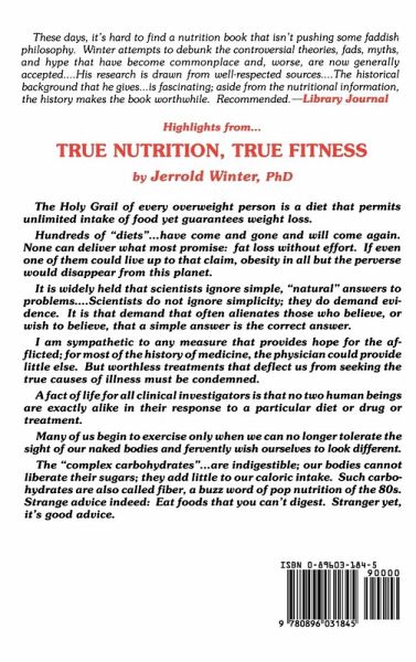 Dr. Winter brings order to our understanding of nutrition, exercise, and how these factors work together in health and illness. Many diseases-cancer, heart attack, and stroke, for example-are discussed in detail. It is not a fad book-just pure facts and good sense.
