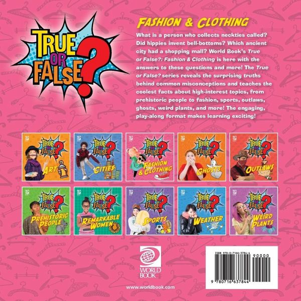 What is a person who collects neckties called? Did hippies invent bell-bottoms? Which ancient city had a shopping mall? World Book's True or False?: Fashion & Clothing is here with the answers to these questions and more!