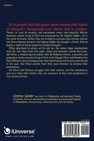A medical journalist, renounced by her fiancé, Olivia Moreno leaves the States to live in Paris with her sister, Connie. Considered reserved, on a whim, Olivia attends a masked charity ball in London. A masked Olivia escapes her comfort zone, partying and conversing with some of Connie’s fashionable and exclusive friends. There, Olivia meets Greek maverick, Ptolemy Verenis, a sword designer. Entranced by her liquid brown eyes, peering through an ornate mask, Ptolemy wins his bid for charity for Olivia and Connie to dine with him and a friend. A relationship with a perfect stranger is unlike sensible Olivia. After that night, Olivia wishes to forget what happened in London. She hopes never to see Ptolemy again. But Ptolemy is intent on finding her.