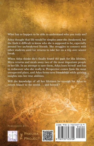 What has to happen to be able to understand who you truly are? Adya thought that life would be simpler once she Awakened, but she finds it difficult to know who she is supposed to be, especially around her unAwakened friends. She struggles to connect with other students until Lir returns to take her on a trip over winter break. When Adya thinks she's finally found the path for this lifetime, Myra returns and steals away two of the most important people in her life. In an attempt to save them, Adya loses herself and has to rediscover who she really is. Perspective comes from the most unexpected place, and Adya forms new friendships while gaining insights into her true abilities. Will the knowledge of all her lifetimes be enough for Adya to return balance to the world. . .and herself?