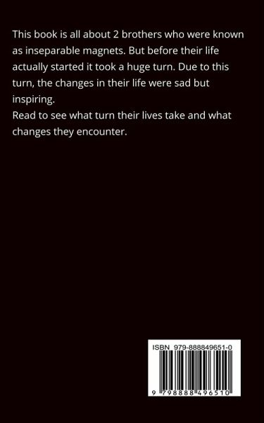 This book is all about 2 brothers who were known as inseparable magnets. But before their life actually started it took a huge turn. Due to this turn, the changes in their life were sad but inspiring. Read to see what turn their lives take and what changes they encounter.