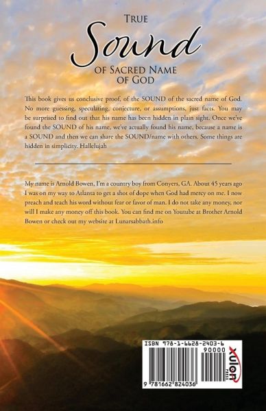 This book gives us conclusive proof, of the SOUND of the sacred name of God. No more guessing, speculating, conjecture, or assumptions, just facts. You may be surprised to find out that his name has been hidden in plain sight. Once we've found the SOUND of his name, we've actually found his name, because a name is a SOUND and then we can share the SOUND/name with others. Some things are hidden in simplicity. Hallelujah My name is Arnold Bowen, I'm a country boy from Conyers, GA. About 45 years ago I was on my way to Atlanta to get a shot of dope when God had mercy on me. I now preach and teach his word without fear or favor of man. I do not take any money, nor will I make any money off this book. You can find me on Youtube at Brother Arnold Bowen or check out my website at Lunarsabbath.info