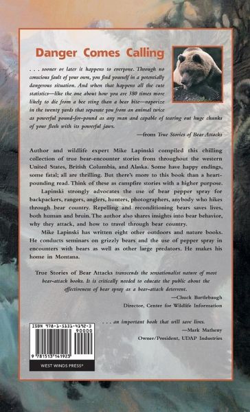 Author and wildlife expert Mike Lapinski compiled this collection of true bear-encounter stories from throughout the western United States, British Columbia, and Alaska. Some have happy endings, some fatal; all are thrilling. But there's more to this book than a heart-pounding read. Think of these as campfire stories with a higher purpose. Mike strongly advocates the use of bear pepper spray for backpackers, rangers, anglers, hunters, photographers, anybody who hikes through bear country. Repelling and reconditioning bears saves lives, both human and bruin, he asserts. In TRUE STORIES OF BEAR ATTACKS, Mike also shares insights into bear behavior, why they attack, how to protect yourself in bear country, and thoughts on the future of the great bear in the Lower 48. Organizations such as the U.S.D.A. Forest Service and the Center for Wildlife Information, National Bear Conservation, in Missoula, Montana, have expressed support for Mike's work.