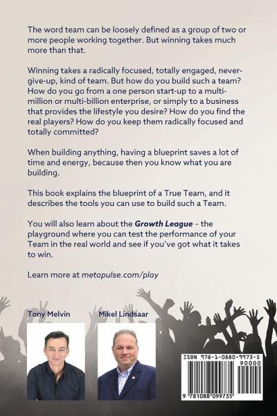 The word team can be loosely defined as a group of two or more people working together. But winning takes much more than that. Winning takes a radically focused, totally engaged, never-give-up, kind of Team. But how do you build such a team? How do you go from a one person start-up to a multi-million or multi-billion enterprise, or simply a business that provides the lifestyle you desire? How do you find the real players? How do you keep them radically focused and totally committed? To build anything, it saves a lot of time and energy when you know what you are building, when you have a blueprint. This book explains the Blueprint of a True Team and the tools you can use to build such a Team. And you learn about the Growth League - the playground where you can test the performance of your Team in the real world and see if you've got what it takes to win.