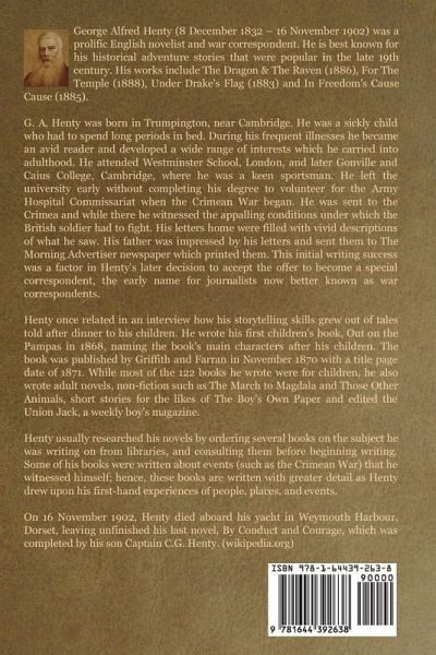 G.A. Henty was a prolific English novelist born on 8 December 1832 near Cambridge. In his childhood facing the health issues, he was almost confined to bed so, he developed a good hobby of reading books. For his education he joined Westminster School London and Cambridge University. He had good interest in sports also. In 1853, Crimea war broke out, by the time he decided to join the British army and he went Crimea as war correspondent. After the Crimean War he resigned the army and began article writing for standard newspaper. As a special correspondent, he covered, Austro- Italian war, British Punitive Expedition Abyssinia, the Prussian War, Turco- Serbian War and Opening of the Suez Canal. Throughout his life he supports British Empire. He wrote his first children's book, Out On The Pampas in 1868. With children's book, he wrote fiction, non-fiction novel and short stories but he is best historical adventurous story writer. He was died in 1902. His notable works include-The March of Magdala, The Bravest of the Brave, In the Reign of Terror, The Dragon and The Raven, For the Temple, Under Drake's Flag and In Freedoms Cause, At Agincourt etc.