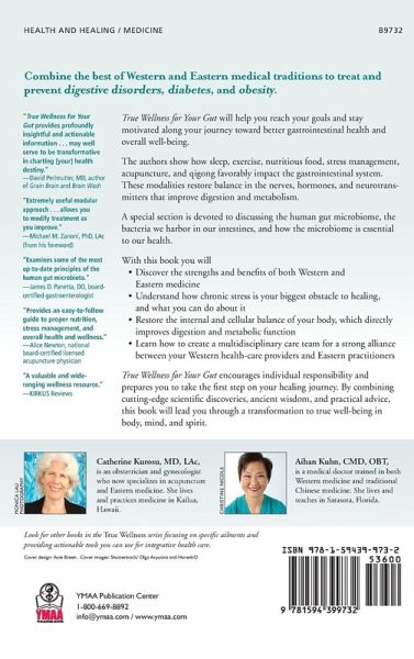 Combining the best that Eastern and Western medicine can offer to help you understand, treat, and prevent of digestive conditions, diabetes, and obesity. All the while, boosting your immune system! By blending modern research with ancient practices, this book will help readers stay positive and keep motivated along their journey toward better health and overall well-being. The authors have helped thousands of people through the use of surgery, pharmaceuticals, acupuncture, herbs, qigong, tai chi, meditation, and life-style counseling. They explain how Western medicine has substantiated a long-held understanding of the gut held by Eastern medicine "that digestive health significantly impacts and is impacted by sleep, emotions, movement, food, and social support". The authors discuss how sleep, exercise, nutritious food, stress management, acupuncture, and qigong favorably impact the gastrointestinal system. These modalities restore balance in the nerves, hormones, and neurotransmitters that improve digestion and metabolism. A special section is devoted to discussing the human gut microbiome, the bacteria we harbor in our intestines, and how the microbiome is essential to our health. * Drs. Kuhn and Kurosu strongly recommend a collaborative approach, encouraging readers to engage with their Western healthcare providers so that serious conditions can be addressed safely. * They share ideas about how the reader can create a multidisciplinary care team, involving practitioners of both Eastern and Western healing systems. * The explain the science behind meditation, acupuncture, and qigong. * You will learn how the microbiome is essential to good health. * Readers are offered recommendations of proven Eastern and Western therapeutic interventions that will calm the mind, decrease stress, improve sleep and nutrition, strengthen digestion, and normalize metabolism. * Includes a step-by-step guide and qigong exercises designed to promote overall gastrointestinal health. Digestive disease is complex and requires a multifaceted approach for successful treatment. By blending the ancient wisdom of Eastern Medicine with cutting-edge Western discoveries, True Wellness for Your Gut will help you stay positive and achieve optimal health, whether through prevention or treatment of digestives conditions, diabetes, and obesity.