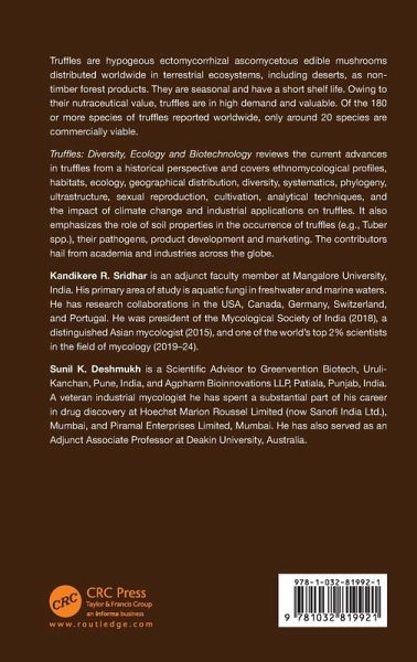 Kandikere R. Sridhar is an adjunct faculty member at Mangalore University, India. His primary area of study is aquatic fungi in freshwater and marine waters. He has research collaborations in the USA, Canada, Germany, Switzerland, and Portugal. He was president of the Mycological Society of India (2018), a distinguished Asian mycologist (2015), and one of the world's top 2% scientists in the field of mycology (2019-24). Sunil K. Deshmukh is a Scientific Advisor to Greenvention Biotech, Uruli-Kanchan, Pune, India, and Agpharm Bioinnovations LLP, Patiala, Punjab, India. A, veteran industrial mycologist, he has spent a substantial part of his career in drug discovery at Hoechst Marion Roussel Limited (now Sanofi India Ltd.), Mumbai, and Piramal Enterprises Limited, Mumbai. He has also served as an Adjunct Associate Professor at Deakin University, Australia.