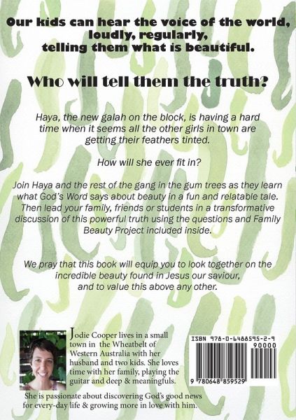 Our kids hear the voice of the world telling them, loudly, regularly, what it says is beautiful. Who will tell them the truth? Haya, the new galah on the block, is having a hard time when it seems all the other girls in town are getting their feathers tinted.How will she ever fit in? Join Haya and the rest of the gang in the gum trees as they learn what God's Word says about beauty in a fun and relatable tale. The story unpacks the Bible's teachings from 1 Peter 3:3-4 on beauty, as well as other key passages, and takes readers on a journey to see the depth of beauty revealed to us in Jesus. This book goes far beyond teaching Christian girls to have a positive body image.After enjoying the story lead your family, friends or students in a transformative discussion of this powerful truth using the study questions and Family Beauty Project included inside. This book was written with Christian teen girls in mind, but we believe they are not the only ones who need to read it. Every family member, young or old, can benefit from the simple yet profound truths shared. We pray that this resource will equip you to look together on the incredible beauty found in Jesus our saviour, and to value this above any other.