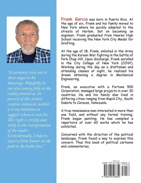 This collection of funny, entertaining and witty political cartoons covers the outrageous saga of Donald Trump's misadventures from his 2016 election win onward to present day. The timely, insightful commentaries add new perspective for 2024. Author and artist Frank Garcia, born in Puerto Rico and a former Fortune 500 Executive, fought in the Korean War and is fighting again today, with humor, what he perceives as the absurdities of Trumpism.