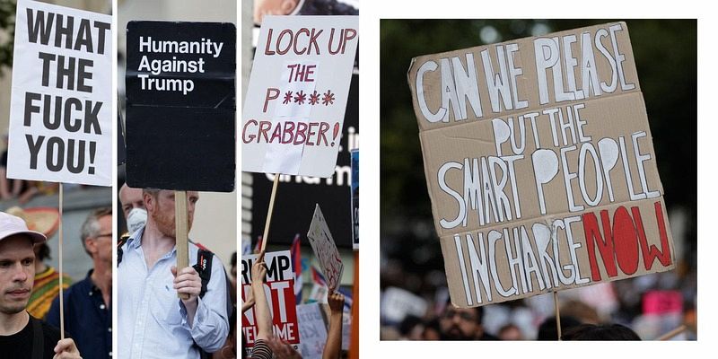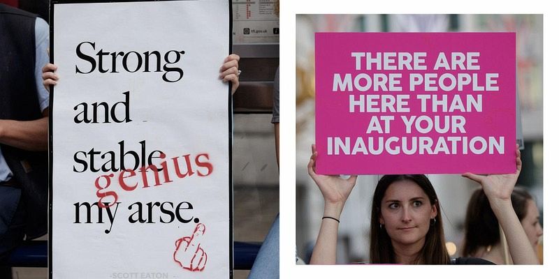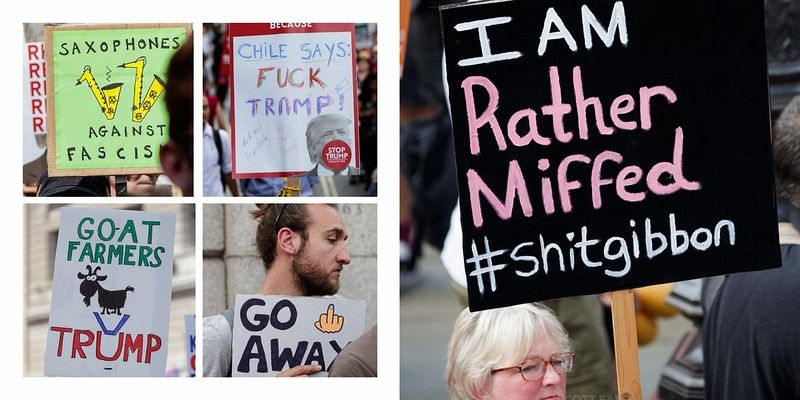 A hilarious photographic record of an anti-Trump march and the wonderfully creative banners that appeared in it.