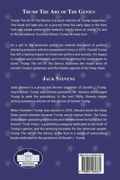 Donald Trump's story needs to be told. The Deep State and Left-Wing Media are attempting to ruin Donald Trump's legacy with lies, misinformation, and fake criminal indictments that have no basis in reality. It is the goal of these corrupt officials to have Trump remembered and written in history books not as the genius and hero that he is, but as a villain. Light dispels darkness: Each book published by Truth Press is designed to shine the light of truth on the lies and burst forth the true leadership of Trump's genius. In this first of a series of Trump books, we take the reader from his early days in the New York real estate scene to his meteoric rise to fame on reality TV, Trump success follows him at every turn. He built his brand into a global empire, becoming a household name and a symbol of wealth and luxury. Donald Trump's journey from a real estate magnate to the highest office in the land is nothing short of extraordinary. This self-made billionaire set his fortune and luxurious life aside to fight for us, the American people. He saw what the corrupt swamp was doing to everyday Americans. His presidency was marked by both great triumphs and run-ins with the swamp as he implemented controversial policies on behalf of America, to make it Great again. There's no denying that Donald Trump has left a lasting impact on American politics and society. His legacy is complex and multifaceted, and it will be admired for many years to come.