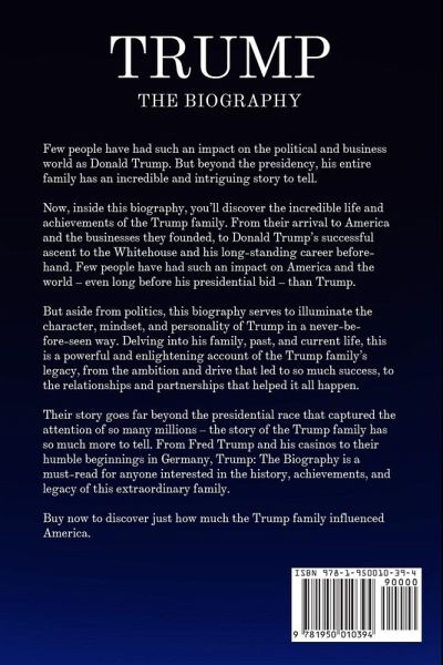 Few people have had such an impact on the political and business world as Donald J Trump. But beyond the presidency, his entire family has an incredible and intriguing story to tell. Now, inside this biography, you’ll discover the incredible life and achievements of the Trump family. From their arrival to America and the businesses they founded to Donald J Trump’s successful ascent to the Whitehouse and his long-standing career beforehand. Few people have had such an impact on America and the world – even long before his presidential bid – than Trump. But aside from politics, this biography…mehr